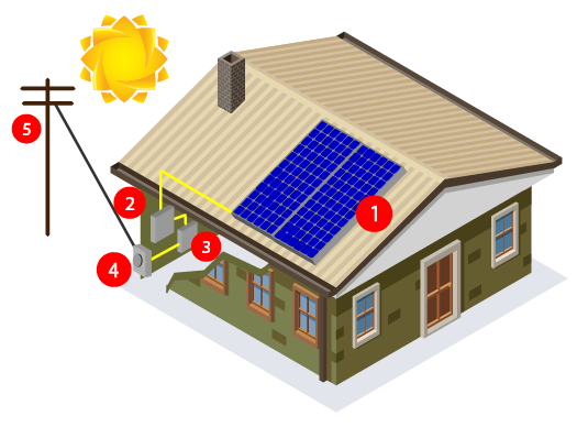La electricidad producida por el sistema de energía solar compensa la medición (esencialmente el medidor gira en sentido inverso).